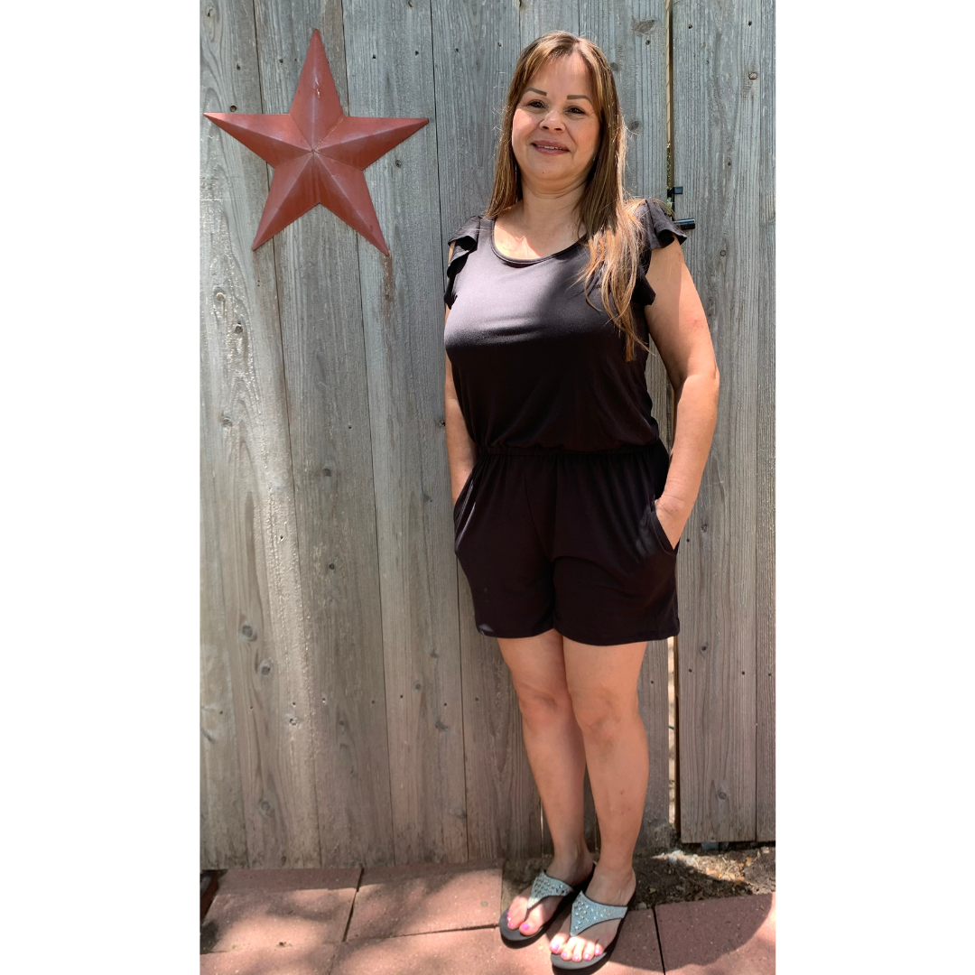 Ruffle Detailed Sleeve Romper with side Pockets. Comfortable,Breathable lightweight