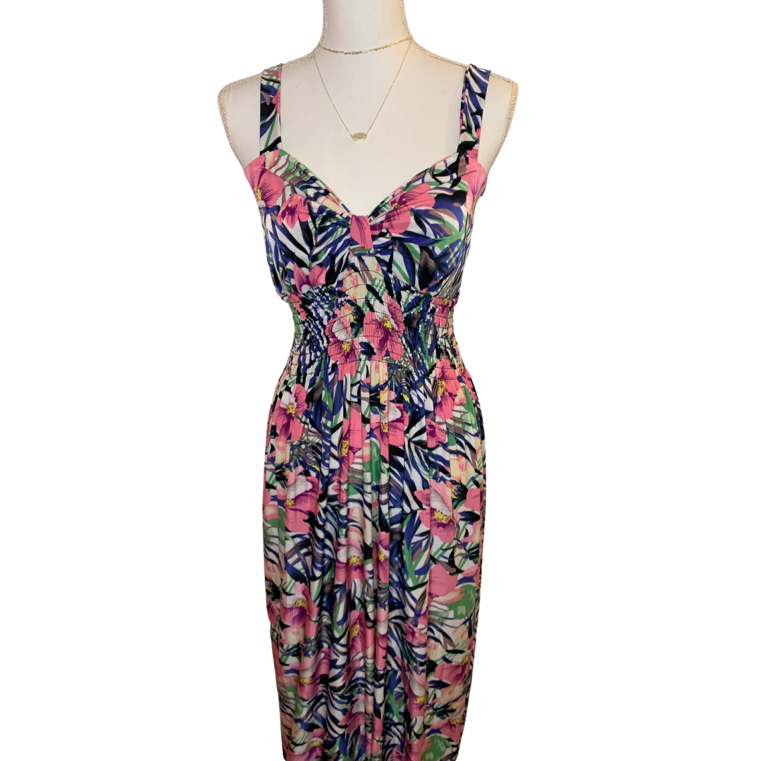Cherry Blossom Maxi Dress made very soft, very stretchy, light weight material. Spaghetti Strap with Crunchy Front.