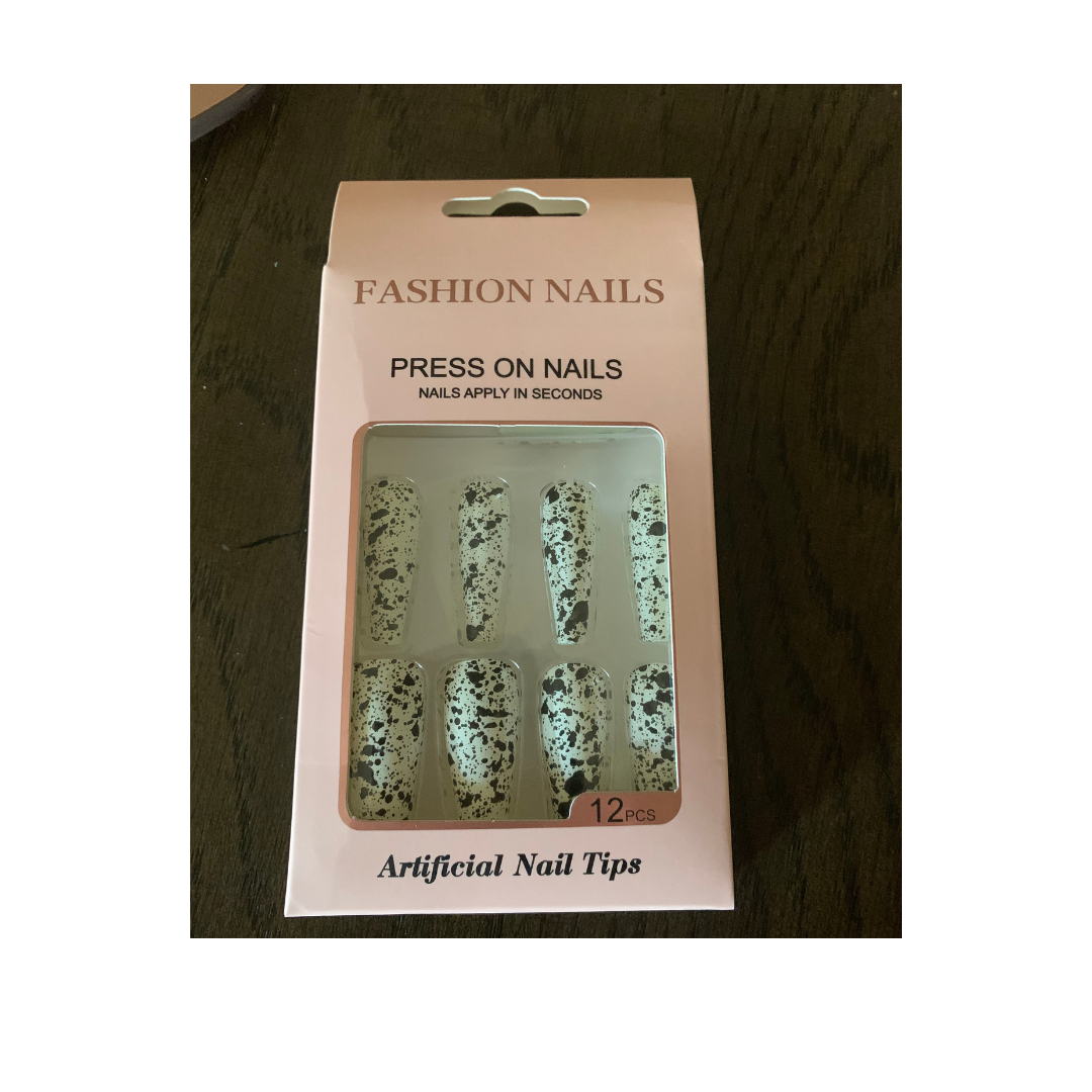 Coffin shaped glitter press on nail