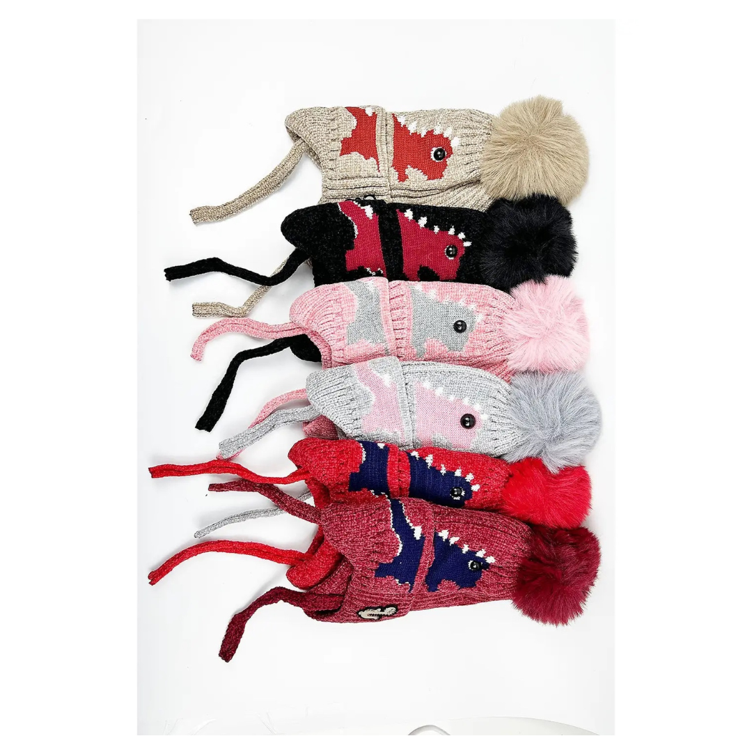 Dinosaur Print Knitted Fabric with Pompom Hat