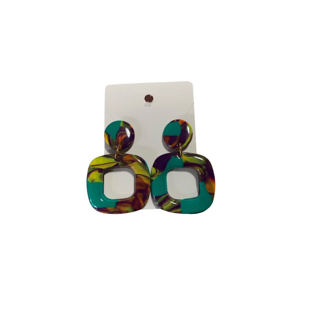 Fall in love with these amazing dangle earrings! These earrings are the perfect addition to any look, and any season Color- deep purple & teal, mix: deep purple, teal, yellow, & orange Material: polymer clay, gold plated studs
