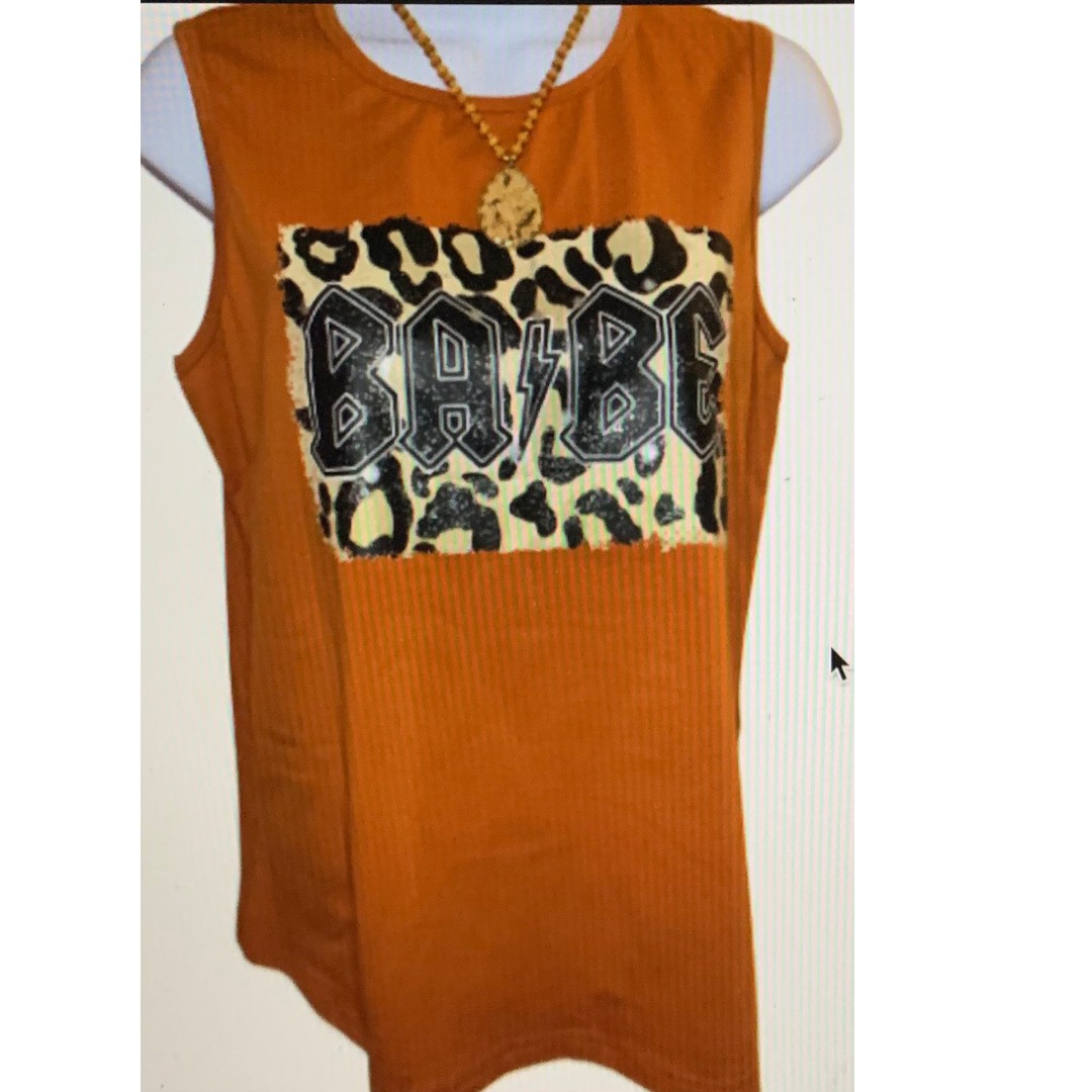 Leopard Babe Graphic Shirt Tank Top. 100% cotton.