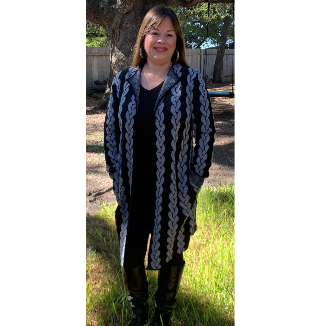 Curvy Size Long Sleeve Pattern Sweater Cardigan