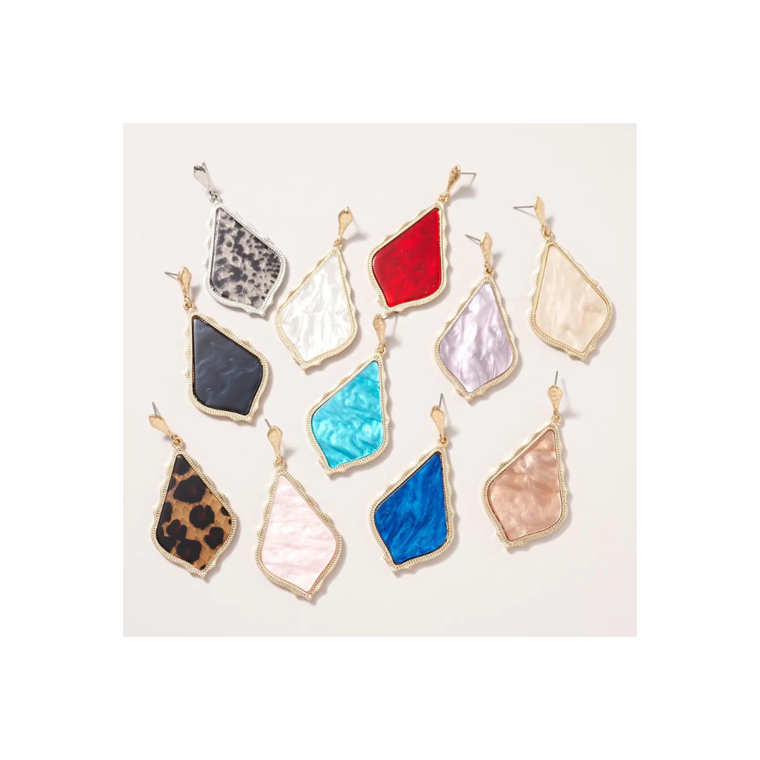 Marbled accetate in rhombus shape and hammered metallic post drop earrings