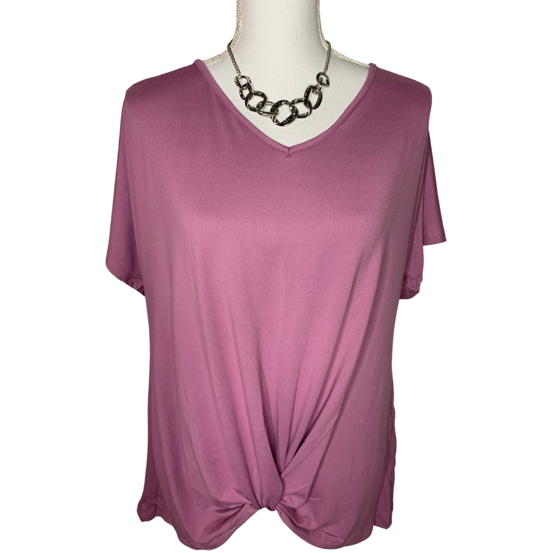 Mauve V-Neck, Knotted Hem, Half Sleeves
