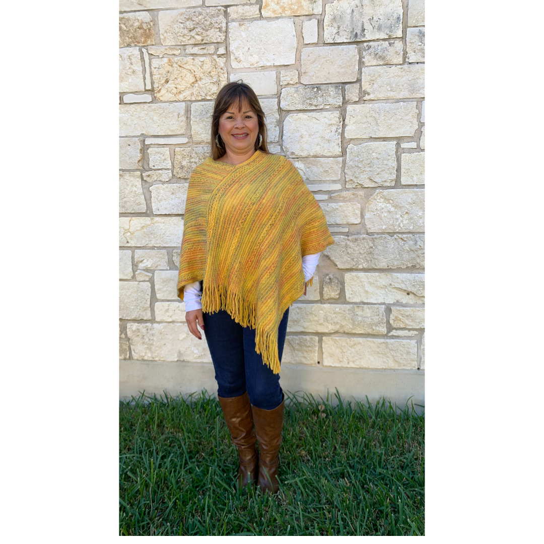 Mustard- Knitted Fringe Stripe Multi Poncho