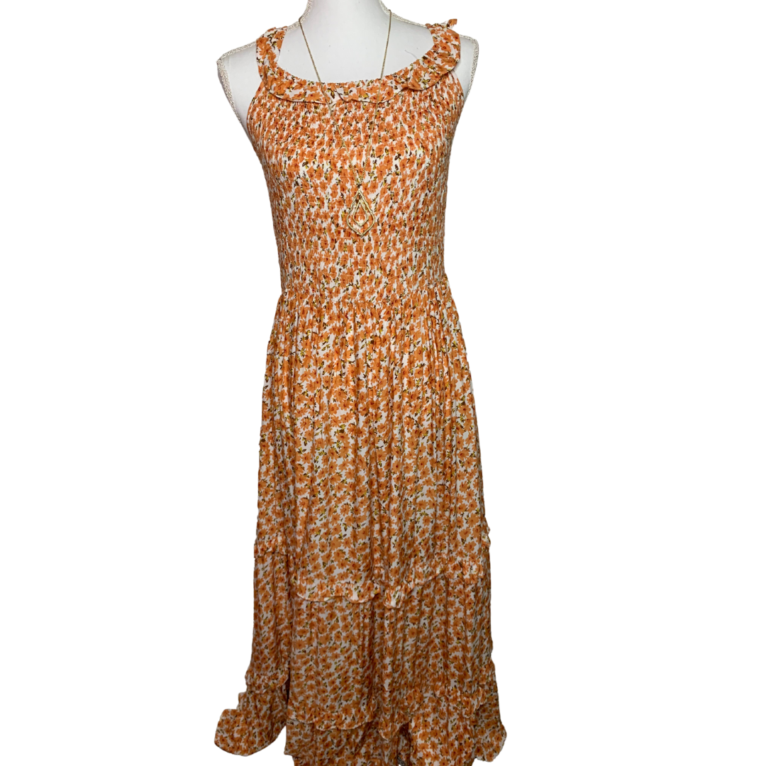 Orange Curvey Size Floral Ruffle Maxi Dress.