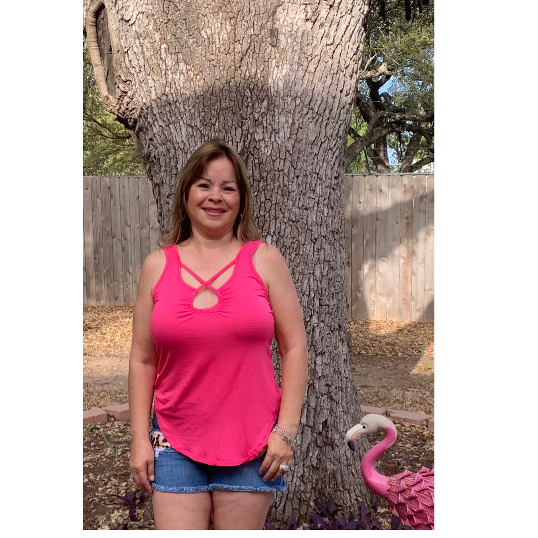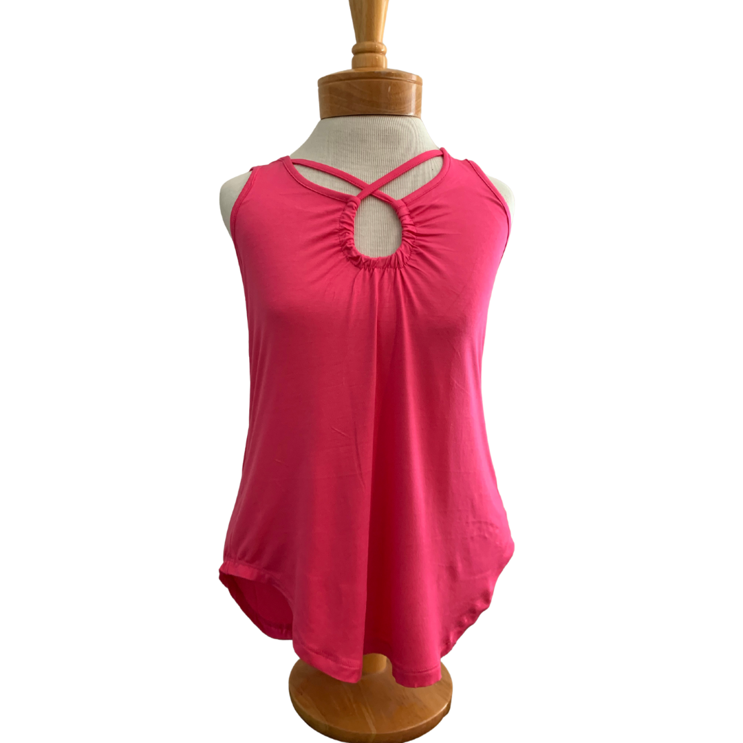 Pink Neck Crossover Straps Sleveeless Tank Top