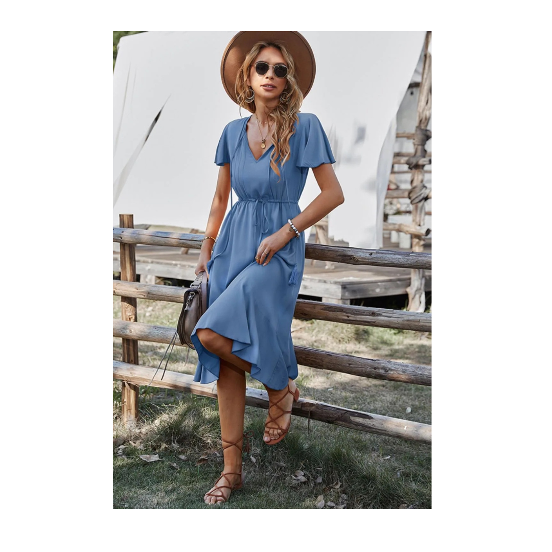 Tassel Tie Flutter Sleeve Dress