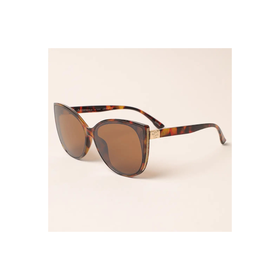 Women's Brown/Gold Glitter Detailed Cat Eye Sunglasses