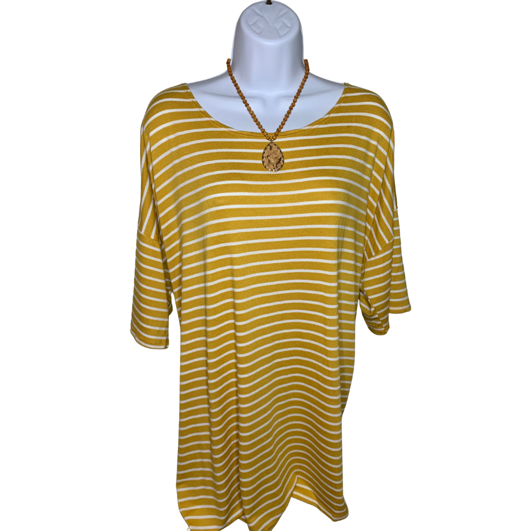 Plus size soft and drapery stripe short sleeve. Can also wear like one side off.